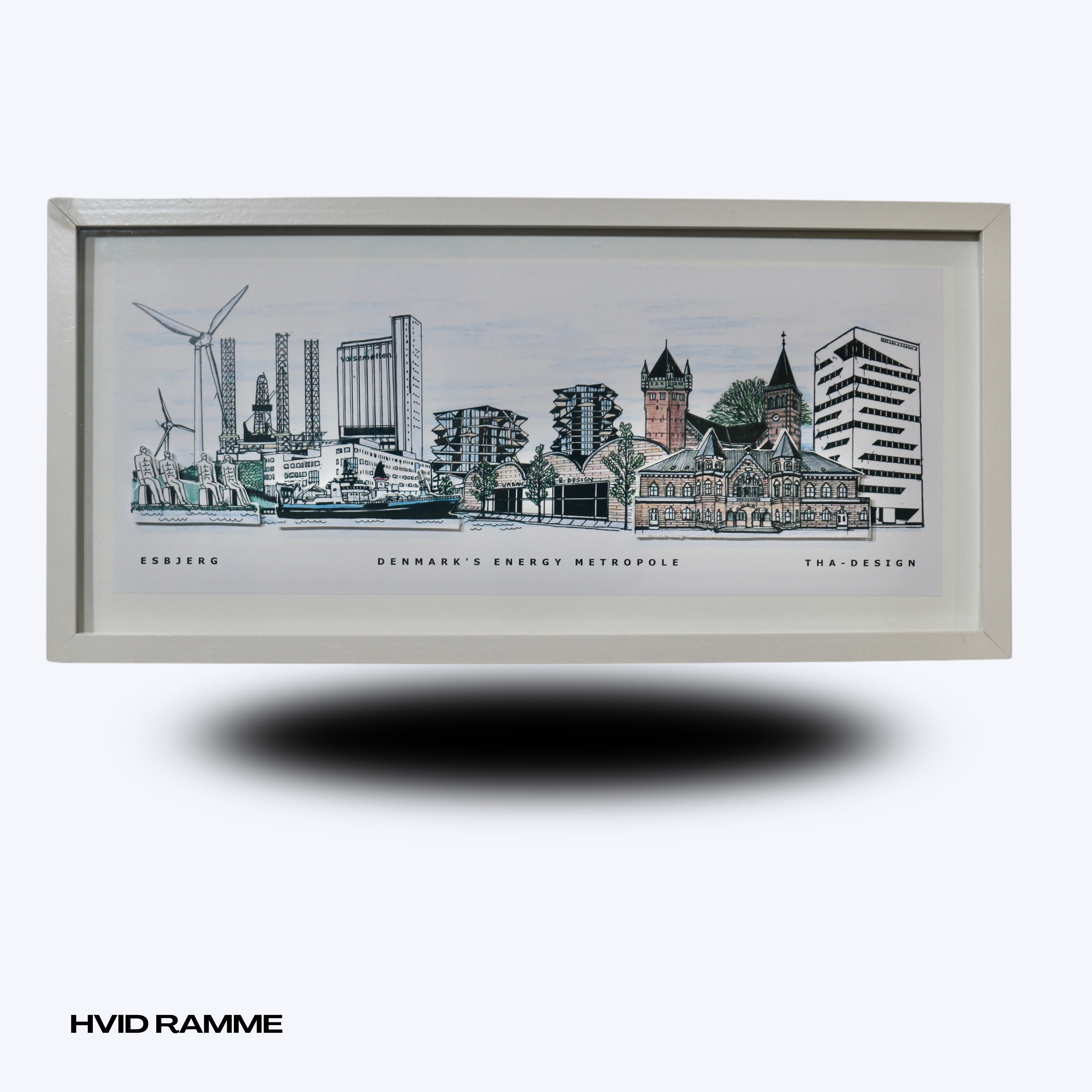 Hvad er et 3D-bymotiv? Et 3D-bymotiv er et håndtegnet bybillede, skabt af vores dygtige kunstner Torben. Torben har specifikt valgt de mest mærkværdige bygninger fra hver by og samlet dem i et motiv. De forreste bygninger på billedet er derefter skåret ud i hånden og sat på en 3 mm flamingoplade, hvilket giver en fantastisk 3D-effekt, når produktet hænger derhjemme i stuen.Håndmalet 3D Ler Relief