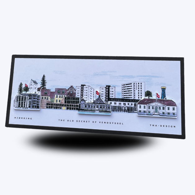 Hvad er et 3D-bymotiv? Et 3D-bymotiv er et håndtegnet bybillede, skabt af vores dygtige kunstner Torben. Torben har specifikt valgt de mest mærkværdige bygninger fra hver by og samlet dem i et motiv. De forreste bygninger på billedet er derefter skåret ud i hånden og sat på en 3 mm flamingoplade, hvilket giver en fantastisk 3D-effekt, når produktet hænger derhjemme i stuen.Håndmalet 3D Ler Relief